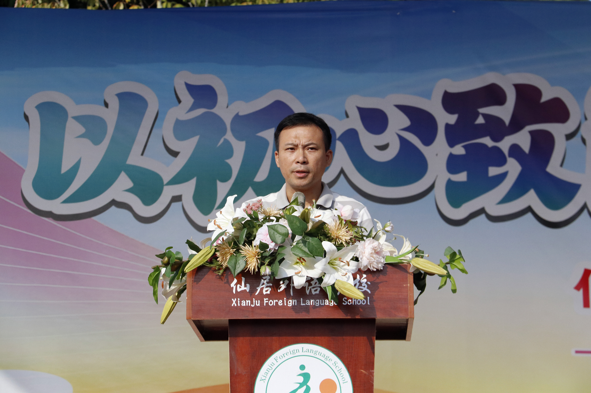新的學(xué)年開(kāi)啟新的征程,徐軍勇校長(zhǎng)以“人生的每一滴汗水,都是在澆灌生命之花”為題發(fā)表新學(xué)期致辭。他回顧了仙外27年優(yōu)秀的教學(xué)與素質(zhì)教育成果,并借優(yōu)秀的北大學(xué)長(zhǎng)學(xué)姐們激勵(lì)學(xué)生,提出“立志、勤學(xué)、自律、有恒”是一個(gè)人成才的關(guān)鍵幾步,強(qiáng)調(diào)讀書可改變命運(yùn)、塑造自我,用奮斗塑造自我,人生將更為開(kāi)闊。最后他祝愿仙外學(xué)子往日不悔,來(lái)日可期。