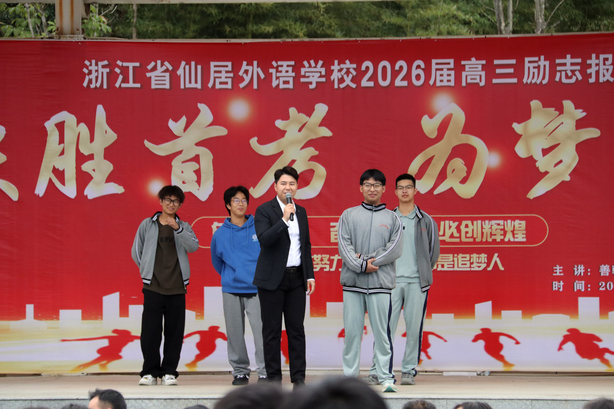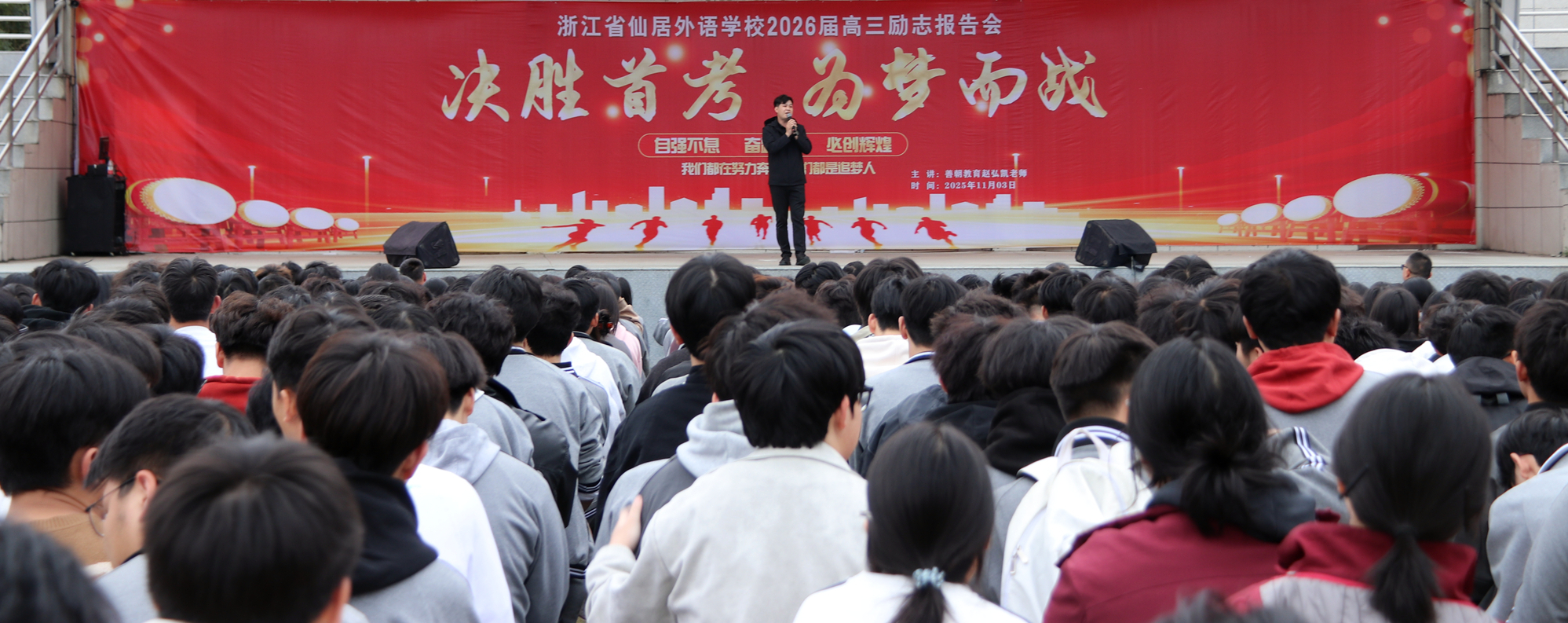 仙外校園網(wǎng)訊(圖文/王懿) 為進(jìn)一步點(diǎn)燃學(xué)生內(nèi)在潛能,錨定學(xué)習(xí)航向與人生信念,賦能青春成長(zhǎng)之路,11月3日下午,我校中學(xué)部田徑場(chǎng)掌聲雷動(dòng),"決勝首考 為夢(mèng)而戰(zhàn)"——2026屆高三勵(lì)志報(bào)告會(huì)在此隆重舉行。來(lái)自善朝教育的全國(guó)青少年勵(lì)志感恩演說(shuō)家趙弘凱老師,以真摯的情感與深刻的洞見,帶領(lǐng)全體師生在感動(dòng)與熱血交織中,凝聚起師生雙向奔赴、攜手共赴夢(mèng)想的磅礴力量。