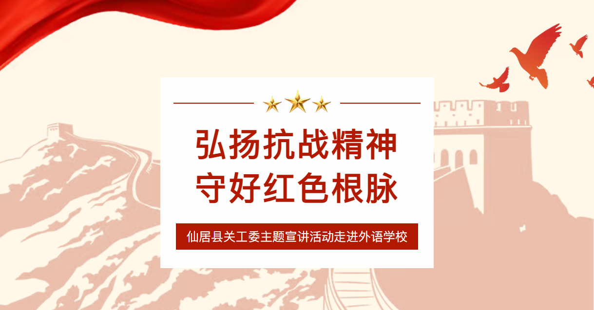 仙外校園網(wǎng)訊 為緬懷崢嶸歲月,傳承紅色基因,10 月13 日下午,仙居縣關(guān)工委“弘揚(yáng)抗戰(zhàn)精神,守好紅色根脈” 主題宣講活動走進(jìn)仙居外語學(xué)校,為仙外學(xué)子打造了一場浸潤心靈的紅色精神洗禮。本次宣講由縣關(guān)工委宣講團(tuán)成員、原城峰中學(xué)書記丁天華主講,用歷史的溫度點(diǎn)燃青少年的理想火種。